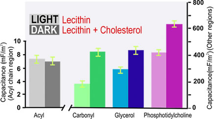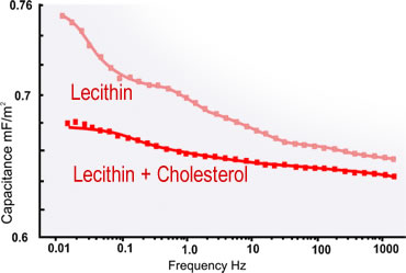 Electrically a lipid bilayer membrane can be subdivided into distinct layers. The INPHAZE Electrical Spectrometer allows you to characterise the dielectric properties of these layers individually.