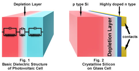 Semiconductor photovoltaic cells contain several distinct regions; the p region, n region and depletion layer at the junction of these semiconductor regions (Fig.1).